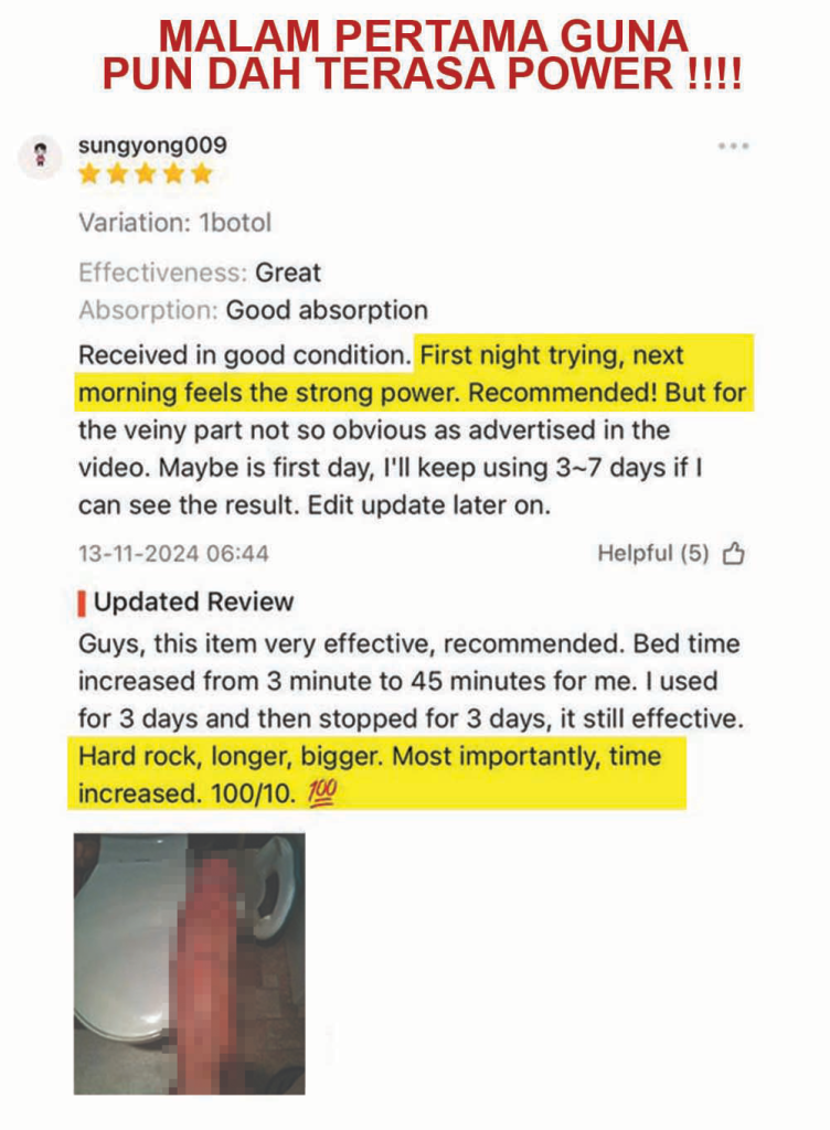 Dijamin Selamat & Berkesan. Ini Bukan PROPA atau semata-mata nak menjual, tetapi untuk membantu para suami berusia untuk KEMBALIKAN KEYAKINAN. Tiada janji palsu di-sini. Hanya usaha dan Tawakkal Kepada Allah. Insyallah Berjaya. Amin.